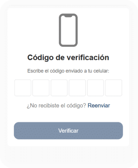 Ingresa el código enviado a tu teléfono por SMS, correo o llamada.
